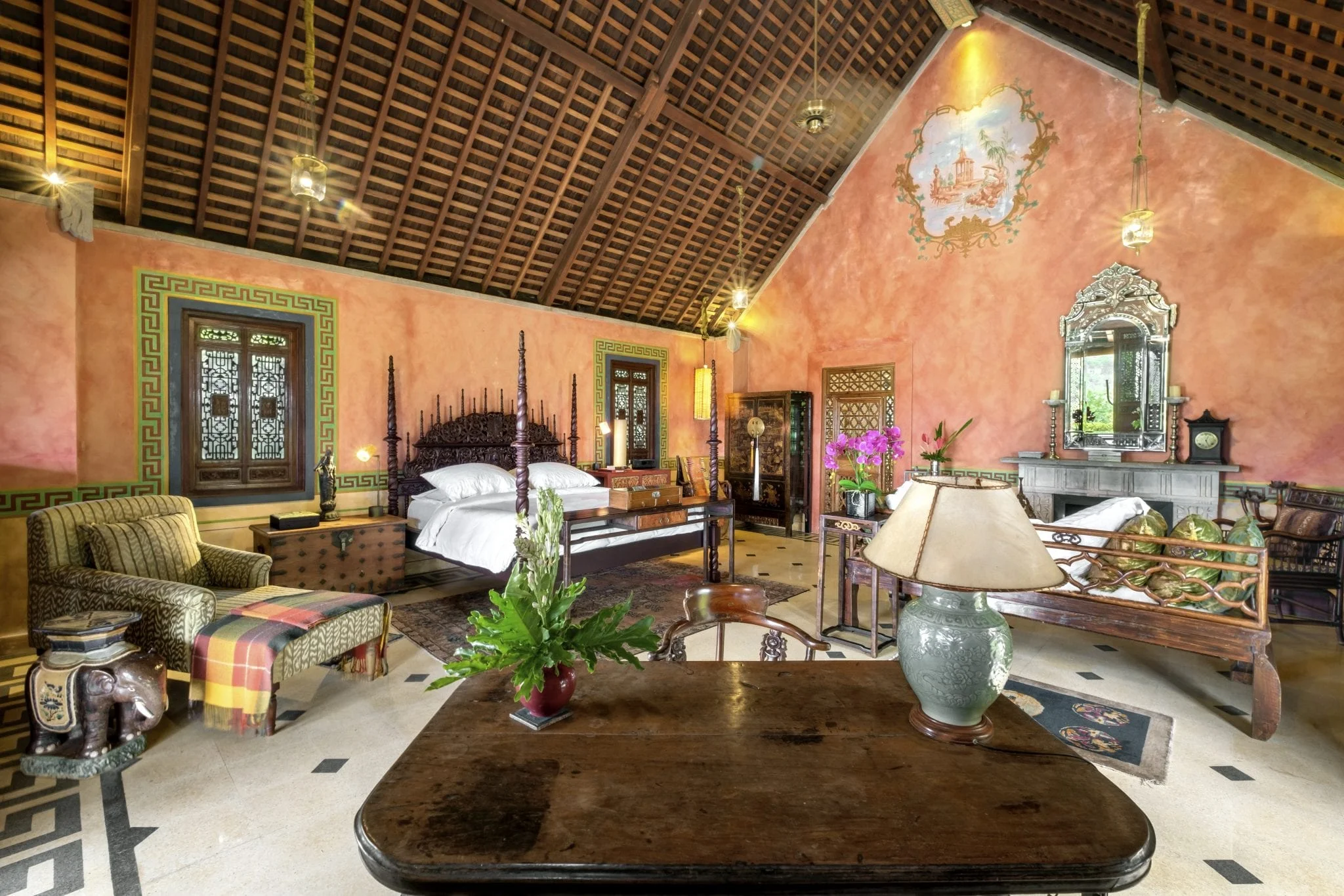 We DO NOT have air conditioning in the bedrooms, as the home is designed to take advantage of the natural breezes. It is cooler in the mountains and we recommend to bring jumpers. The average temperature year round at night is approximately 70 degrees, and thus a very comfortable temperature to sleep. There are insects in the garden, but we normally do not have mosquitos.